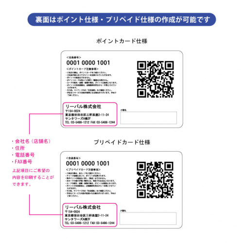 ・カードの裏面に、店舗情報を印刷して載せることが可能です。